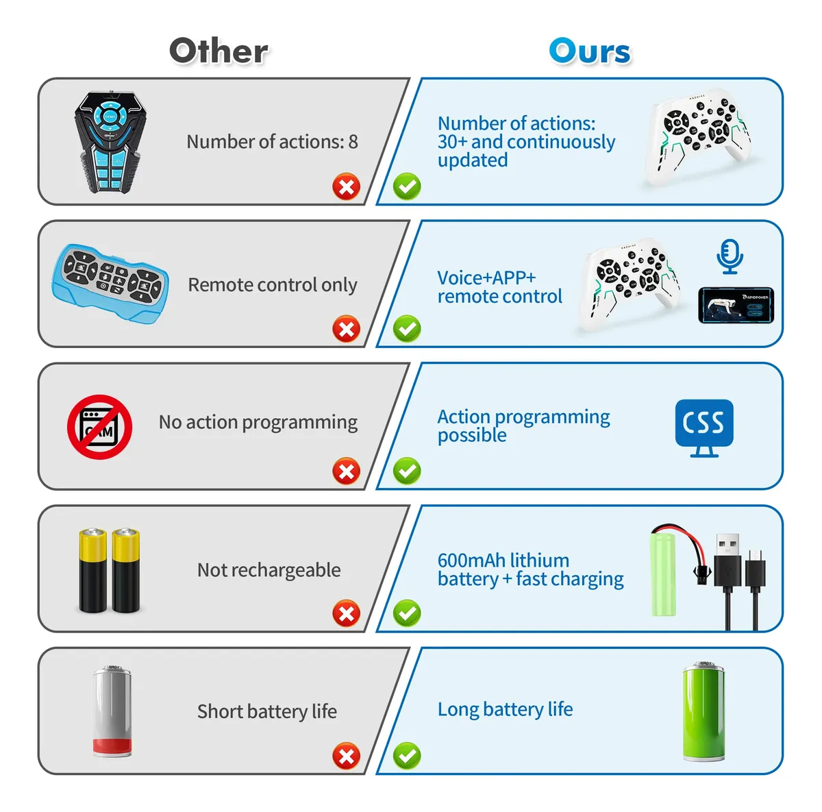 Além dos brinquedos robóticos básicos: ao contrário dos dispositivos baratos de $30, este cão-robô tem motores de precisão, uma bateria de 600 mAh e atualizações gratuitas de aplicativos com novas ações: ele cresce com seu filho por anos brincando de forma inteligente!