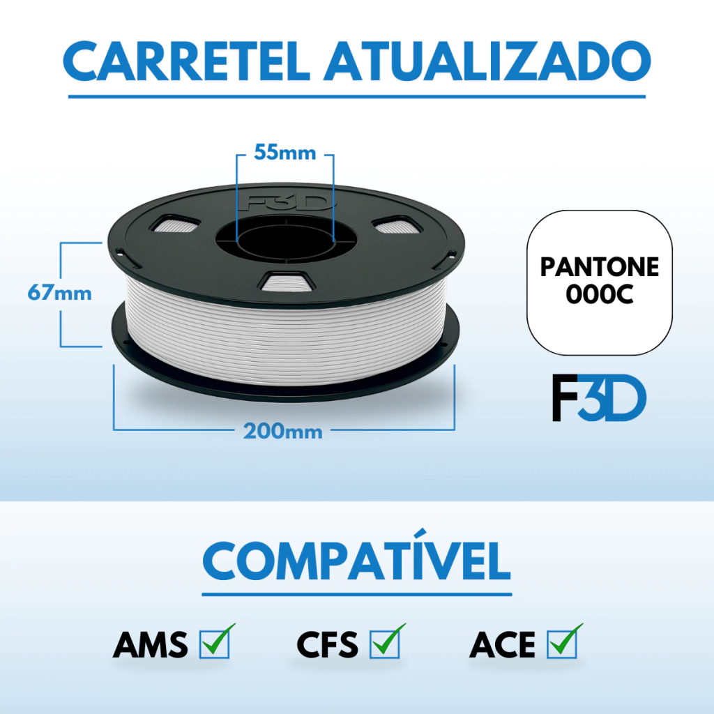 Com uma densidade inferior ao PLA, o filamento ABS oferece mais material por carretel. Isso significa que você pode imprimir mais peças sem precisar de recargas frequentes. Uma solução econômica e eficiente para seus projetos de impressão 3D.
