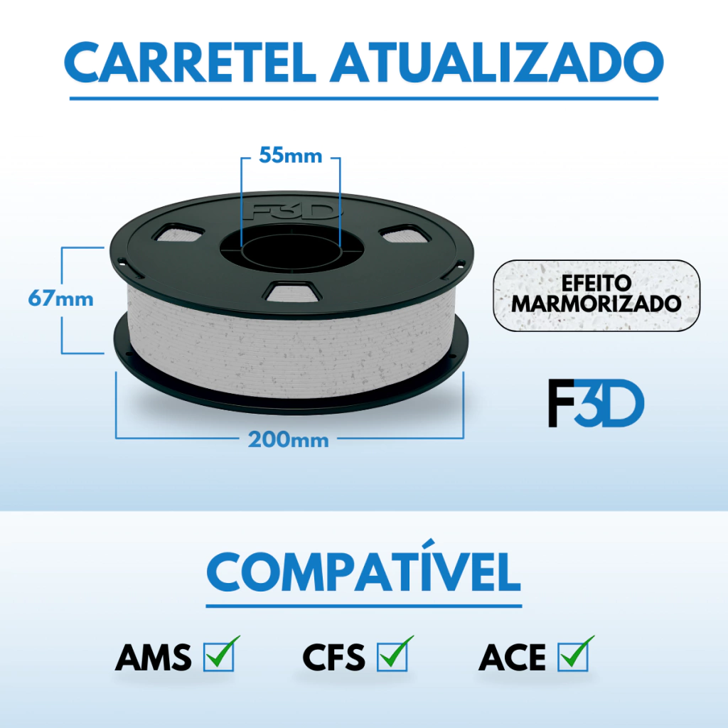 Sim! O PLA Premium Granito foi projetado para impressoras 3D de alta velocidade, especialmente aquelas que utilizam firmware Klipper, como os modelos Creality K1, Bambu A1 e Flashforge 5M. Essas impressoras podem alcançar velocidades de até 600 mm/s, tornando esse filamento 3D perfeito para quem busca máxima produtividade e eficiência.