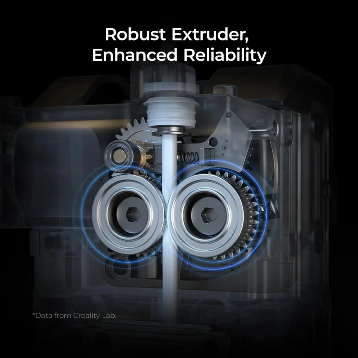 As melhorias na extrusora garantem uma tração continua no filamento sem folgas mesmo em altas velocidades, permitindo uma operação de 1000 horas sem falhas.